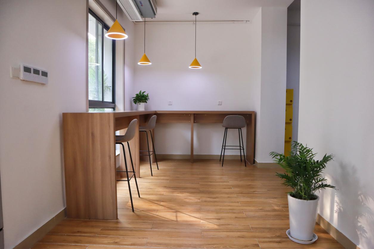 2021年5月,三门路园区公共空间正式启动配套改造。前期我们广泛调研园区学生需要与建议,结合园区党建文化建设需求及场地条件进行改造布置,力图打造一个党建活动和学习交流兼备的公共空间。经方案论证、空间功能划分、家具选型后,活动室于暑期完成装修改造,消防、安防、网络、用电配置及周边环境改造,11月制定《三门路学生公寓活动室使用管理规范》并上墙,12月正式开放使用。