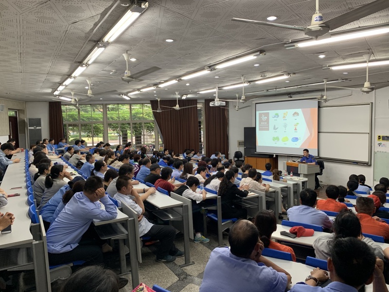 2019年1月31日上海市第十五届人民代表大会第二次会议通过《上海市生活垃圾管理条例》,该条例将于2019年7月1日起施行。 为迎接新条例的实施,系统学习垃圾分类知识,增强员工的垃圾分类意识,做好我校垃圾分类工作,2019年6月25日下午2点,在国定路T2教室,后勤管理处邀请杨浦区城市管理行政执法局机动执法中队的冯程做“上海市生活垃圾分类宣讲会”的讲座。来自各学院职能部门相关老师及3家物业单位100余人参加了此次培训。