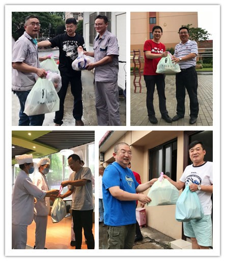 2020年7月6日下午,后勤中心党政领导一行人冒雨来到各部门,慰问奋战在不同岗位的后勤一线员工们,并送上防暑降温物品。