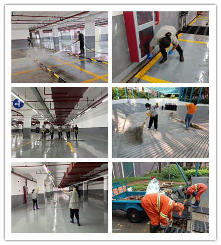 物业部利用国庆假期,组织人员对地下车库进行了深度保洁。根据实际保洁面积,提前对整个保洁工作进行安排部署,集中保洁人力、购置保洁用具。10月7日一早,在部门负责人的带领下,保洁人员带着各种保洁工具、穿好雨鞋,驱车来到国权北园区地下车库,保洁班组长合理规划清洁路线,大家责任到人、分工明确,全身心投入到地下车库的全面保洁工作中。保洁人员用除尘工具,对地库的天花板、墙面死角进行细致的保洁,把灰尘蜘蛛网清理干净。除了表面的除尘清洁外,还对各类设施进行了认真擦拭。最后,大家拿着大小扫帚、尘推,奋力推扫,大量的灰尘和垃圾被清理的干干净净。