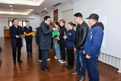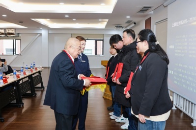 3月14日下午,上海财经大学后勤中心2024年度先进表彰会在教工之家二楼会议室隆重举行。中心领导班子成员、受表彰员工代表及一线职工代表共70余人齐聚一堂,共同见证荣誉时刻。表彰会由后勤中心工会常务副主席胡佳媚主持,现场掌声与赞誉交织,12项年度奖项逐一揭晓,“文明窗口”“文明岗”“服务育人示范岗”“岗位工匠”“优秀管理者”“先进工作者”“生态文明建设标兵”等多个类别共101名优秀员工及35个先进集体获奖。获奖者代表在全场热烈掌声中分批上台领奖。中心领导、部门经理及工会委员逐一为获奖者颁奖。