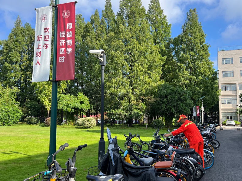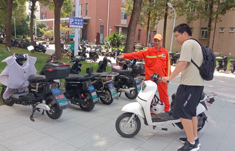 新学期开学伊始,整个校园迎来了热闹的景象。同学们骑着自行车或电瓶车穿梭于宿舍、食堂和教学楼间。物业部非机动车管理员们每天提前值守于重要路段和重点部位,耐心引导学生规范停车。