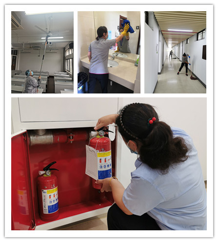 对已打扫过数次的教室和公共区域进行再一次细致的检查、清扫、消毒;对照明、空调、消防设备及应急通道等硬件设施进行全面排查。