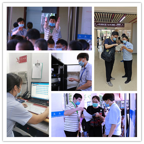因疫情,考试当天考生进校和进考场的时间较以往有所延长。为了充分落实后勤保障工作,所有相关人员提前到岗,各司其职,六点便开始了各项准备工作。教学楼综合管理员协助考务人员做好考生入场的引导和分流。