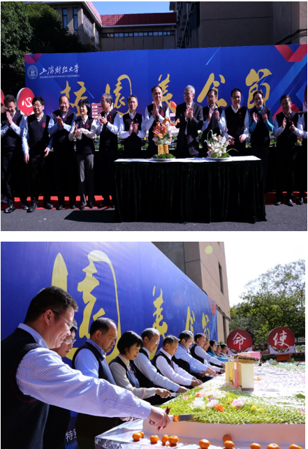 中午11点30分,在师生的期盼中,校领导们共同切开别具仪式感的美食节庆典大蛋糕,标志着上海财经大学第七届校园美食节正式拉开序幕。