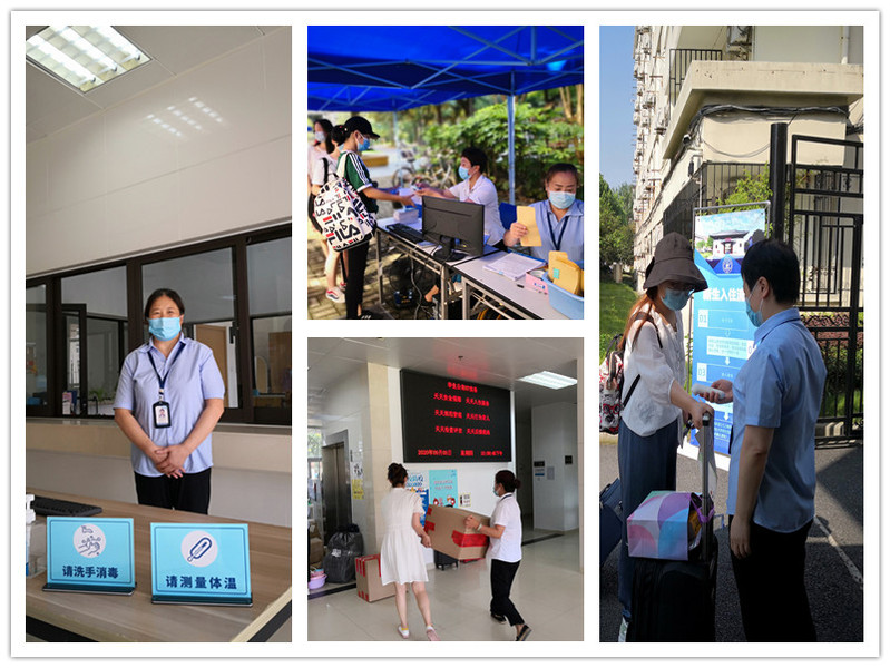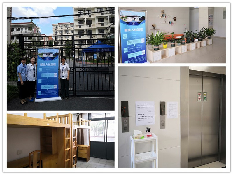 井然有序的管理室,一尘不染的走廊,窗明几净的寝室,干净锃亮的盥洗室,保洁员们挥汗如雨,将宿舍小家清洁一新。按照疫情防控的要求,在学生宿舍区域进行了全方位清洁消毒,全面覆盖,不留死角,并注意保持空气流通。大家严格落实,精心准备,以健康、整洁、温馨的居住环境迎接新生入住。